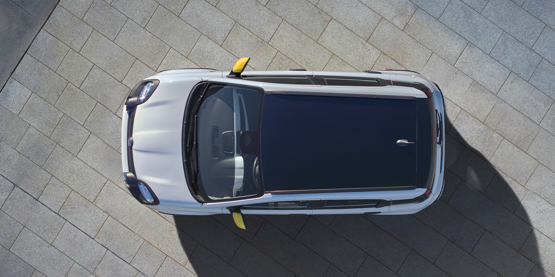 Sitting in the new black fabric seats combined with Seaqual recycled threads with white details, yellow double stiching and the Pandina Monogram embossed.